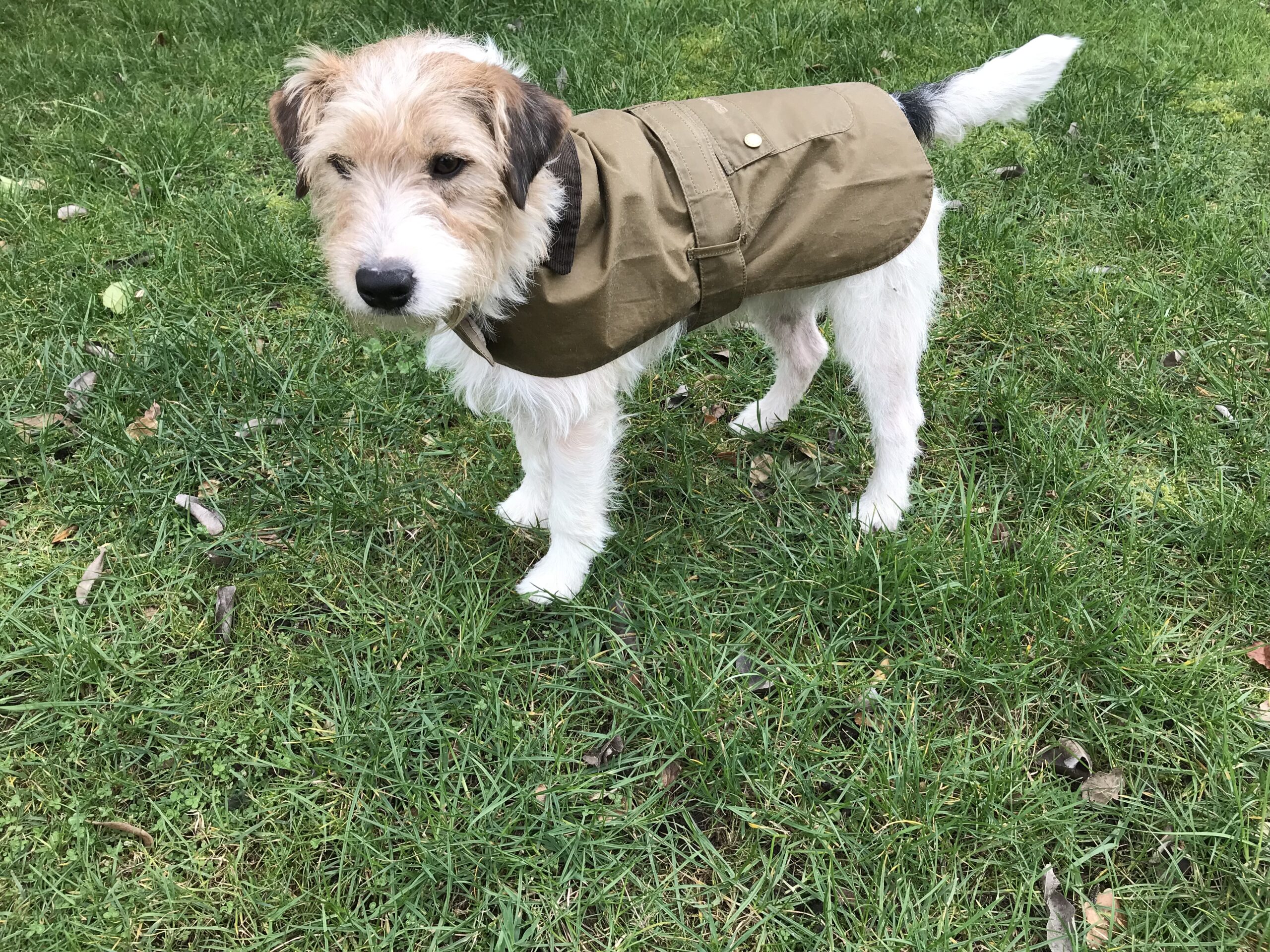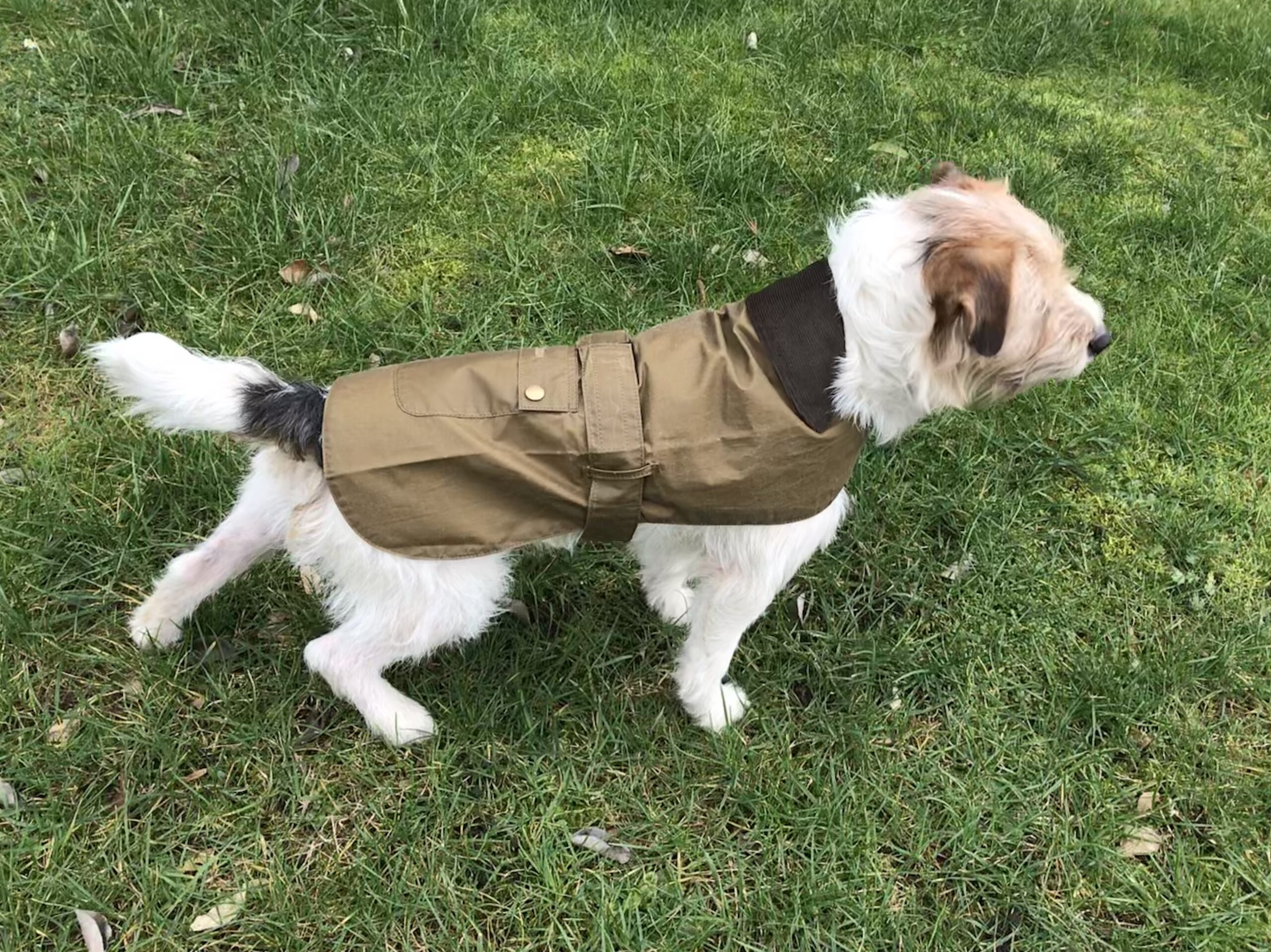 Der leichte Hundemantel aus oberseits gewachster Baumwolle für den schnellen Gassigang vor die Tür, wenn der Vierbeiner trotz eines Landregens trocken und “salonfähig“ bleiben muss. Mit Rückentäschchen für Ortungsgerät, Besitzer-Adresse oder Notruf-Telefonnummer. Gesichert die diese leichte Weste mit einem Klettverschluss am Hals und mit einem Klettriemen unter dem Brustbereich. Dank dieser Klettverschlusslösung sind Hals- und Brustumfang stufenlos einstellbar.