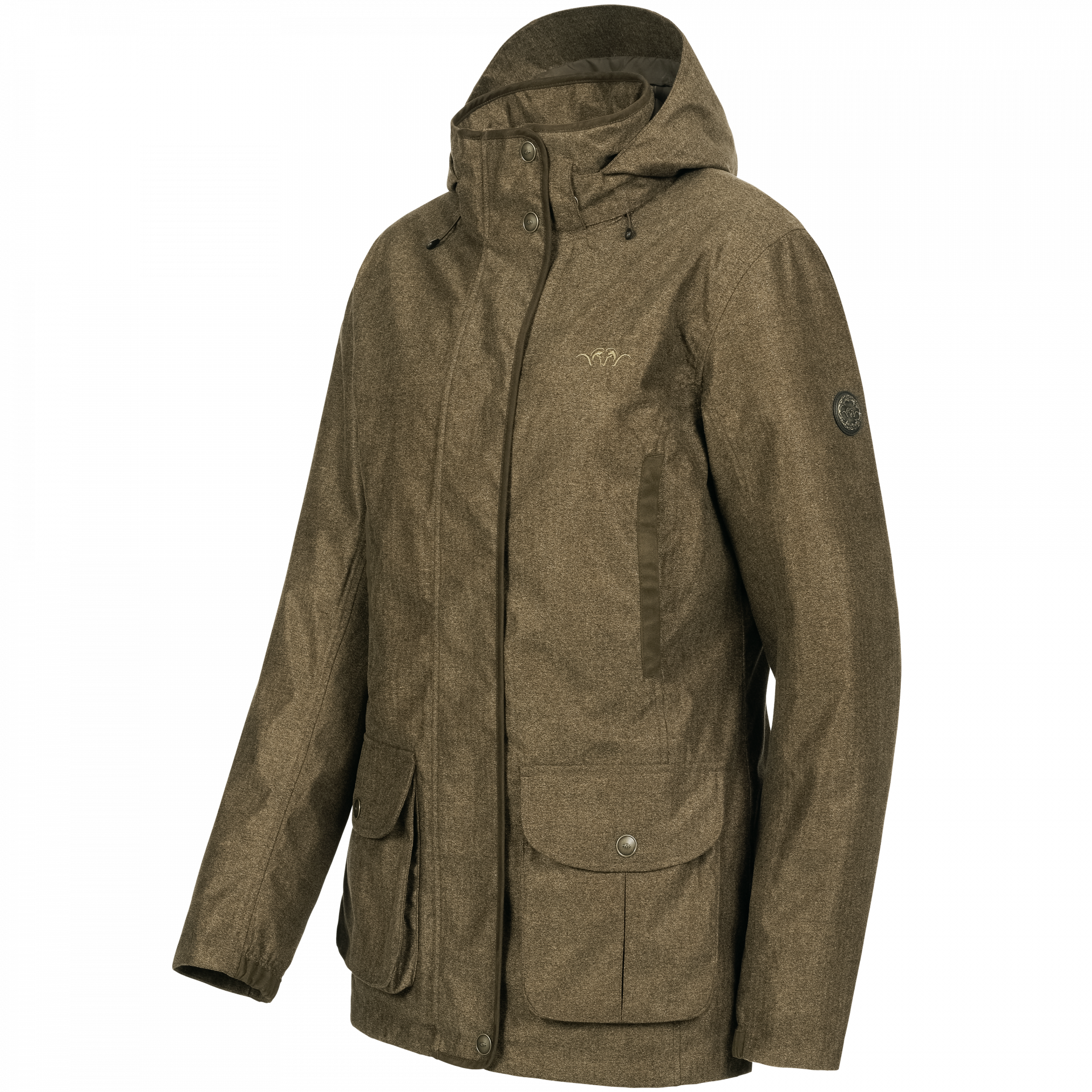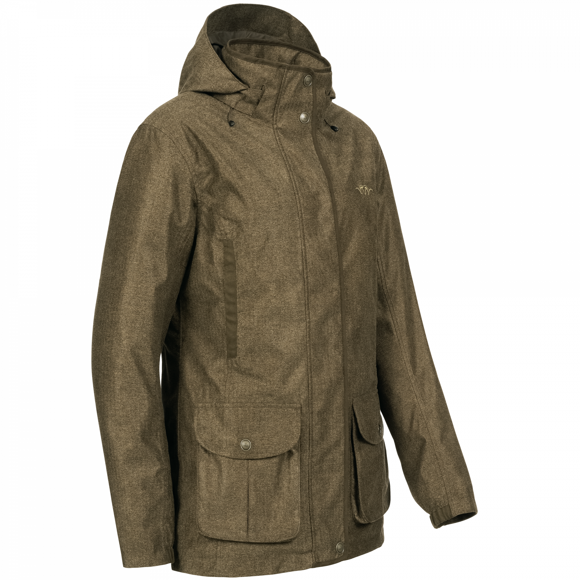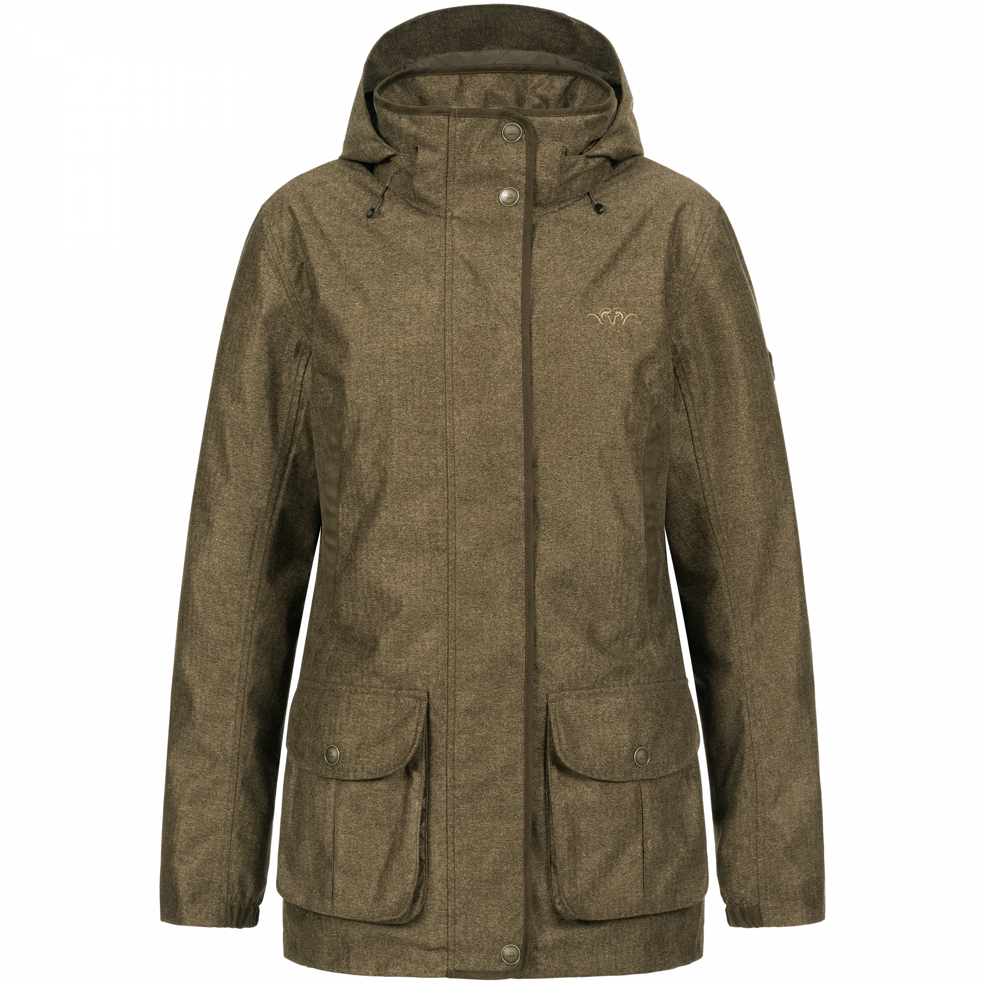 Wasser- und winddichte 2-Lagen-Mantel aus Blaser-Vintage-Gewebe, Wattierung 133 g im Rumpfbereich und 80 g an den Ärmeln, Handwärmertaschen auf Brusthöhe mit gebürstetem Futter, 2 Pattentaschen unten mit Druckknopf und Taftfutter für zusätzliche Strapazierfähigkeit, abnehmbare Kapuze mit 2-Punkt-Verstellung, Suede-Details am Kragen und an den Taschenklappen, Saumverstellung für guten Sitz, Fleece-Innenfutter im oberen Rückenbereich, Taftfutter im restlichen Teil der Jacke, Blaser-Akanthus-Label im Nacken und am Ärmel.