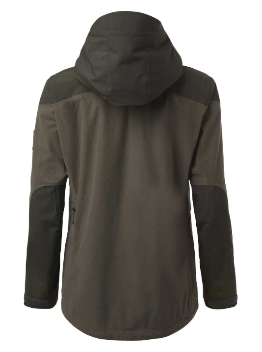 Diese Jagdjacke ist wasser- und winddicht dank der Chevalite-Membran und der verschweißten Nähte. Vorn hat sie einen wasserabweisenden Zweiwege-Reißverschluss. Die Jacke Pointer 3.0 beeindruckt durch eine Reihe praktischer Funktionen wie geräumigen Hängetaschen und Balgtaschen (beide mit Fleecefutter), doppelten Funkgerättaschen und einer großen Rückentasche. Die Innentasche mit Reißverschluss eignet sich zum Aufbewahren von z.B. Schüsseln. Diese Shelljacke bietet eine sehr gute Belüftung durch einen Zweiwege-Reißverschluss vorn und Reißverschlüsse unter beiden Ärmeln. Durch einen Druckknopf am vorderen Saum lässt sich die Jackenfront auch bei geöffnetem Reißverschluss fixieren. Mit ihrem weichen Stretchmaterial und der ergonomischen Passform mit abgewinkelten Ärmeln u. a. bietet die Jacke viel Bewegungsfreiheit. An Schultern und Ellenbogen hat sie Verstärkungen. Sie ist am Saum und an den Ärmelbündchen verstellbar und hat eine weite Kapuze mit Zweiwege-Justierung, die es mit einem Griff möglich macht, sie zu verstellen.