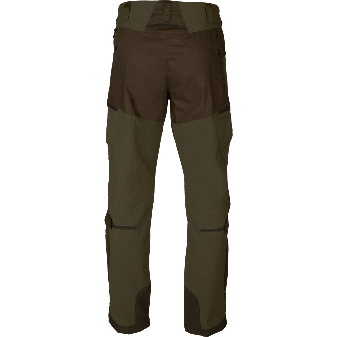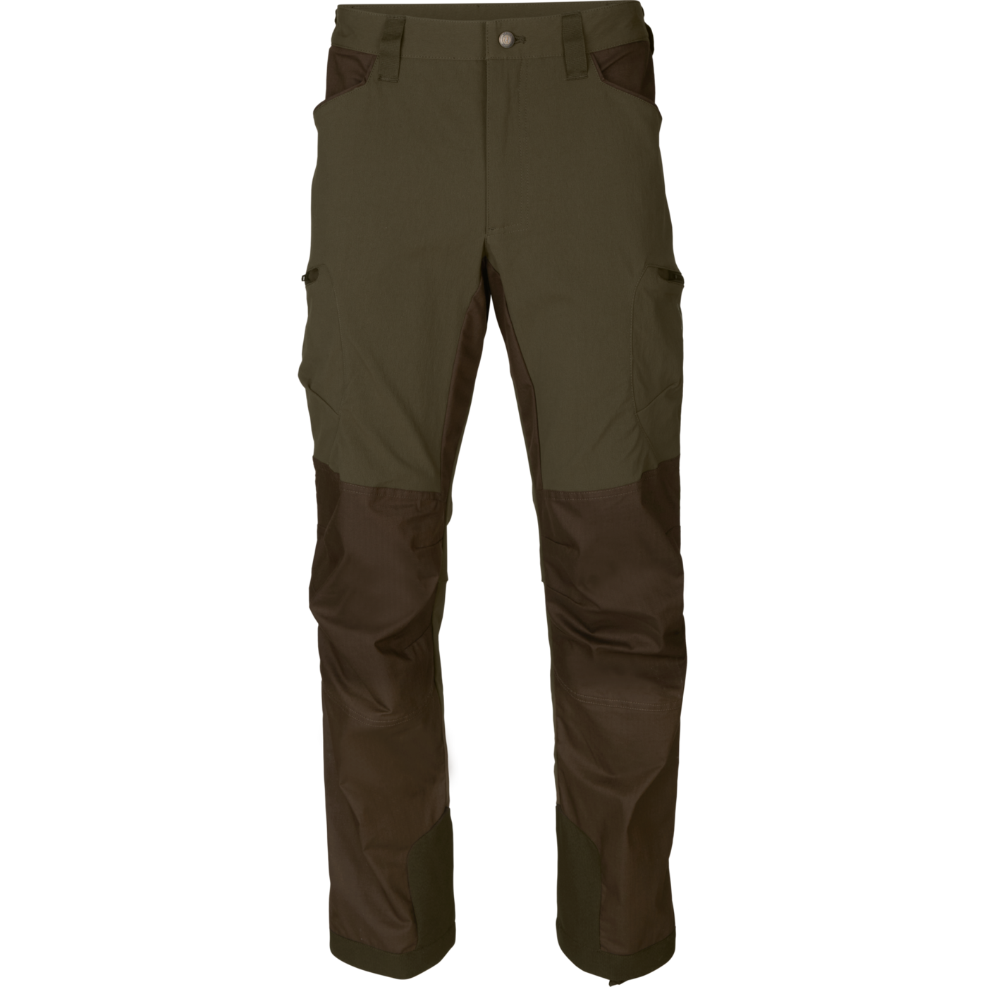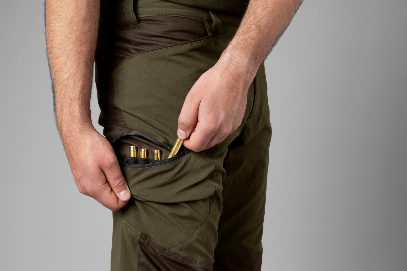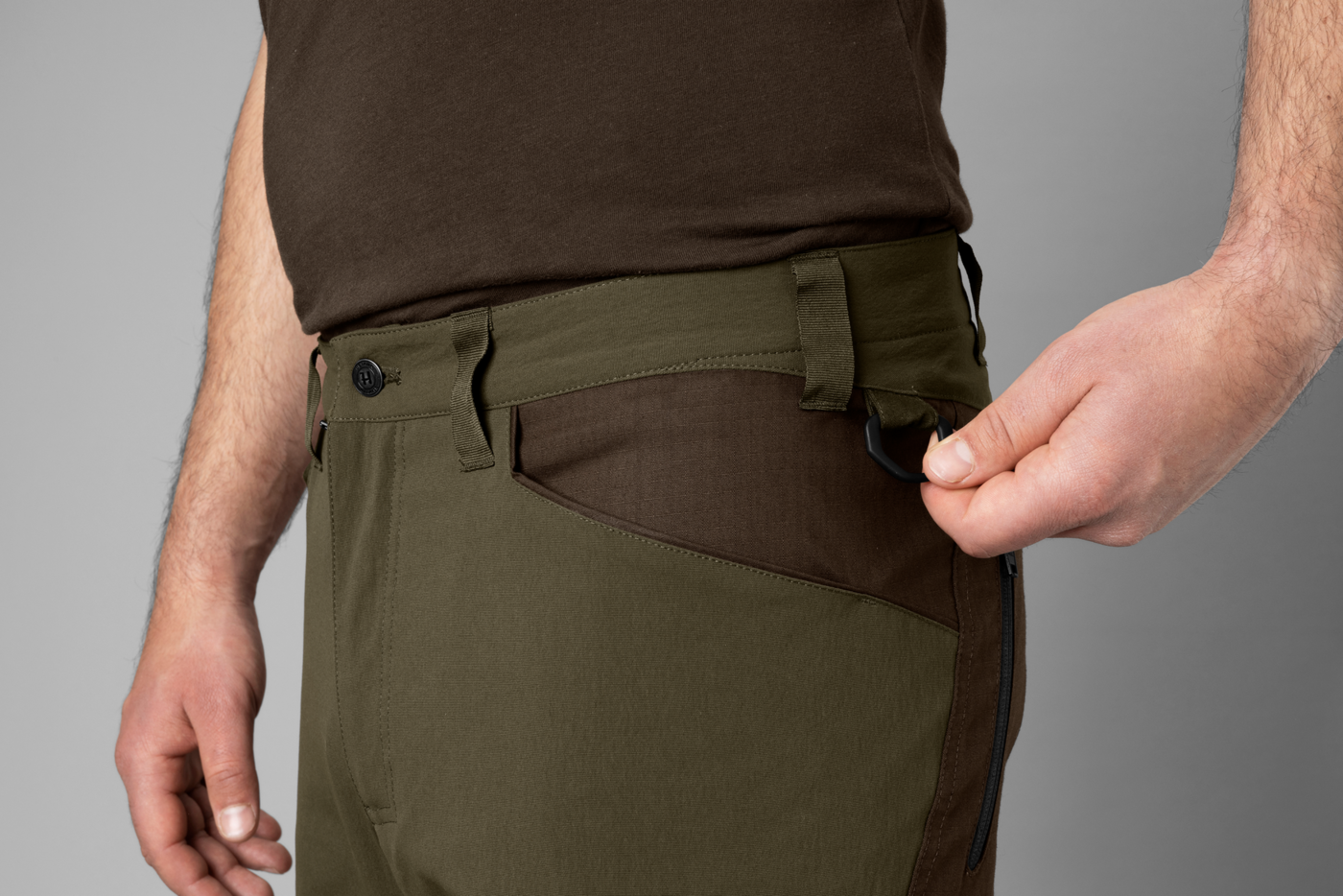 Bequeme Hose Ragnar von HÄRKILA aus robustem Canvas-Gewebe mit wasserabweisendem DWR-Finish. Die farblich abgestimmten Kontrasteinsätze am Vorderbein und den Taschen verleihen der Hose eine sportive Optik. Mit vorgeformter Kniepartie, Ventilationsreißverschlüssen, 2 Reißverschluss-Schubtaschen, 2 Reißverschluss-Beintaschen mit Munitionshalter und D-Ring an der linken Seite.