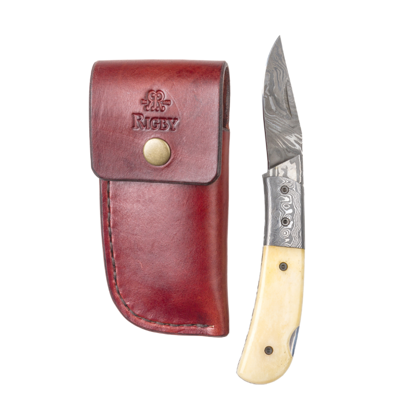 Jedes Messer ist mit dem Rigby-Logo “double R“ graviert. Das Messer wird in der handgefertigen Lederscheide geliefert.