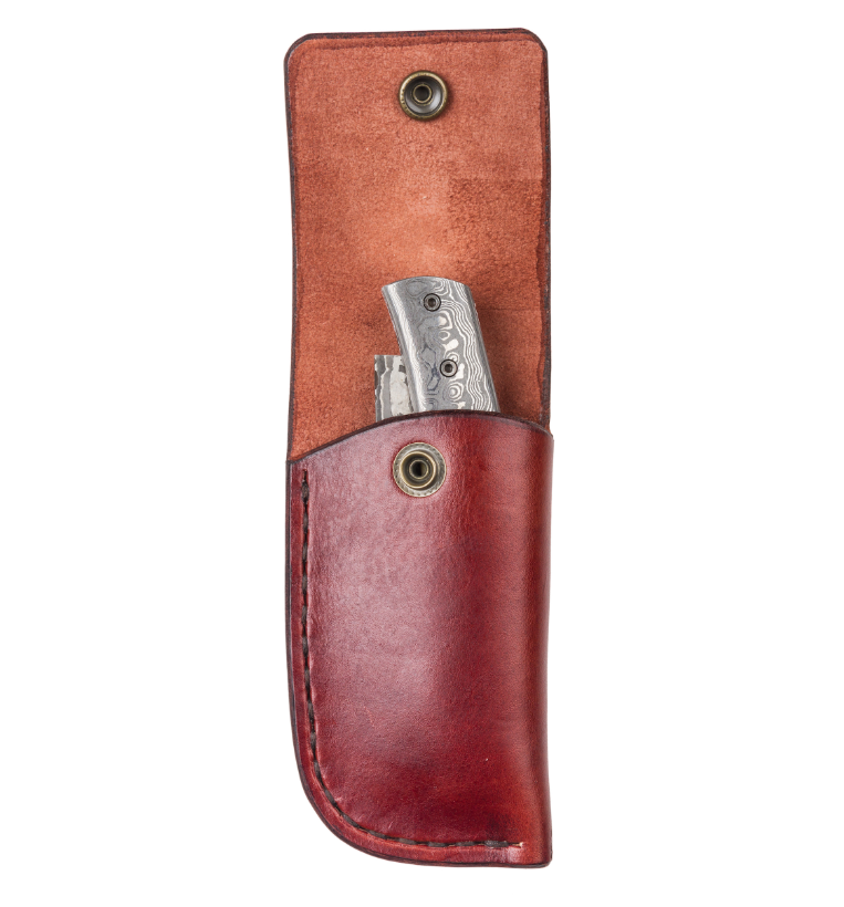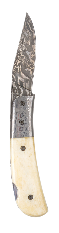 Praktisches, alltagstaugliches Klappmesser aus Damascus-Stahl und Giraffenknochen gefertigt.