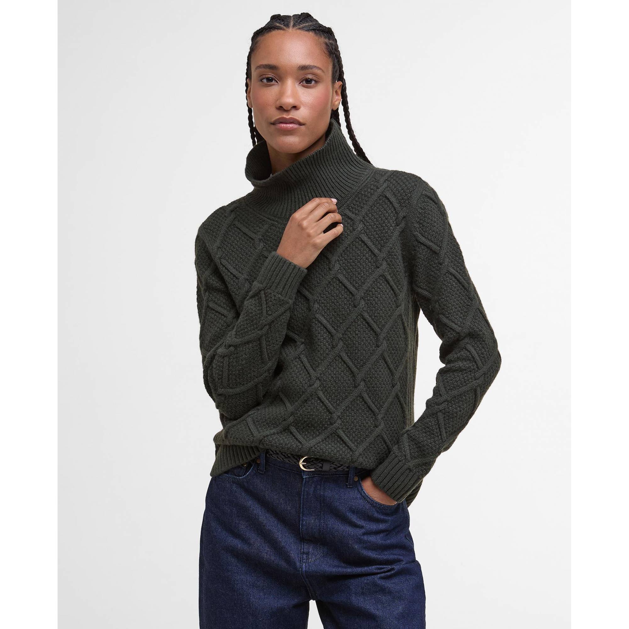 Der Rollkragenpullover Burne Knit wird aus einem warmen Mix aus Wolle und Baumwolle gefertigt und zeichnet sich durch einen Rollkragen und lange Ärmel aus. Stilecht abgerundet wird das Casual-Design durch ein Zopfstrickmuster in Argyle-Optik.