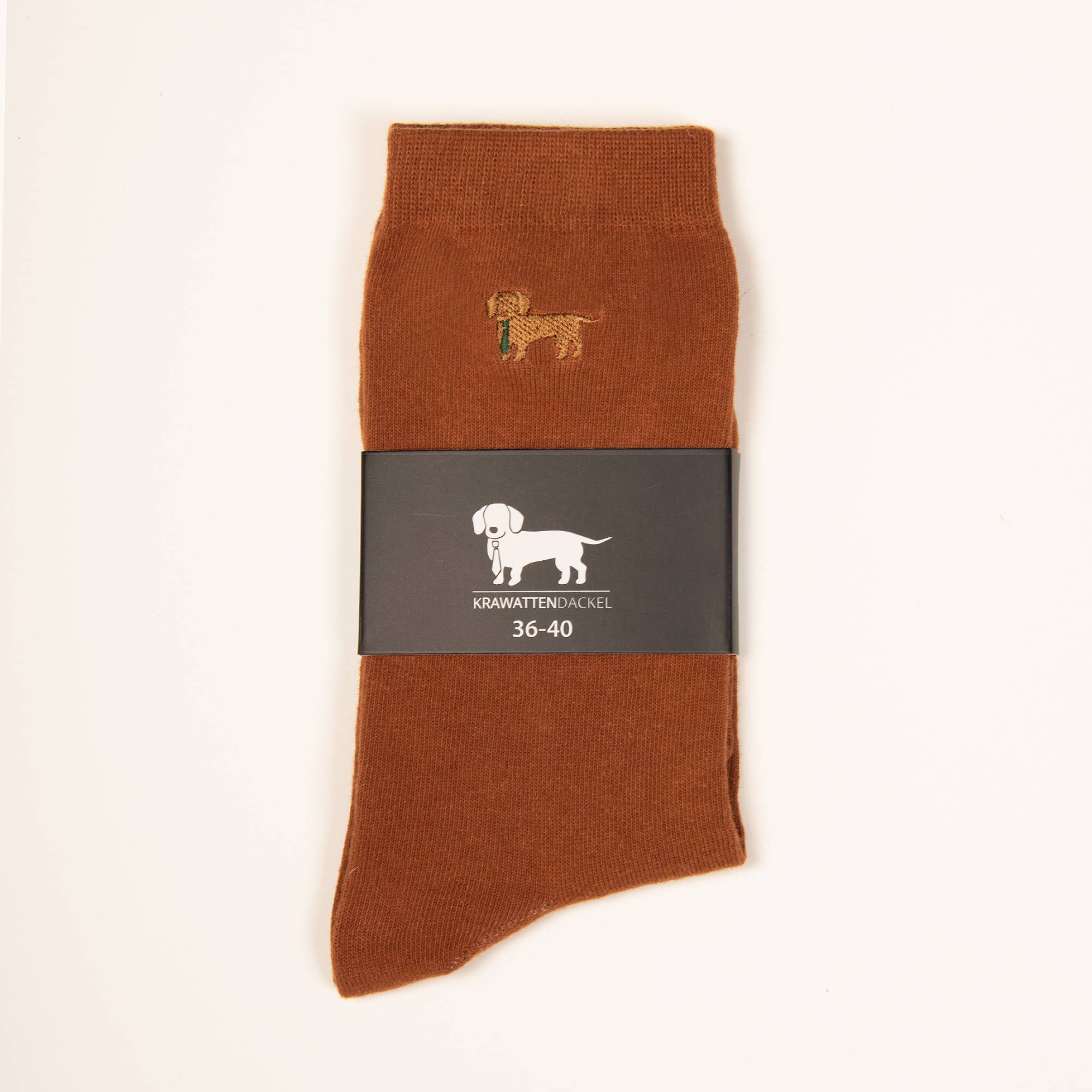 Braune Socken mit gesticktem Dackelmotiv