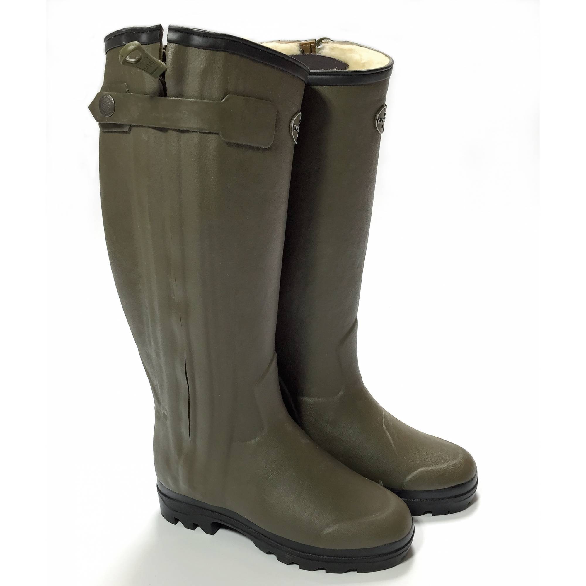 Die Besonderheit dieses Modells innerhalb der Chasseur-Modellreihe besteht zum einen darin, dass der absolut wasserdichte Reißverschluss das Anziehen erheblich erleichtert. Zum anderen ist das Modell Four Fe - wie es der Name schon andeutet - mit einem hellen, lammfellartigen Webpelz ausgekleidet. Dies verbessert die Wärmeisolations-Fähigkeit und damit auch das Wohlfühlen insbesondere bei kalten Temperaturen enorm. Der Four Fe ist deswegen unter den Stiefeln von Le Chameu vielleicht derjeinige mit den besten Kaltwetter-Eigenschaften.
