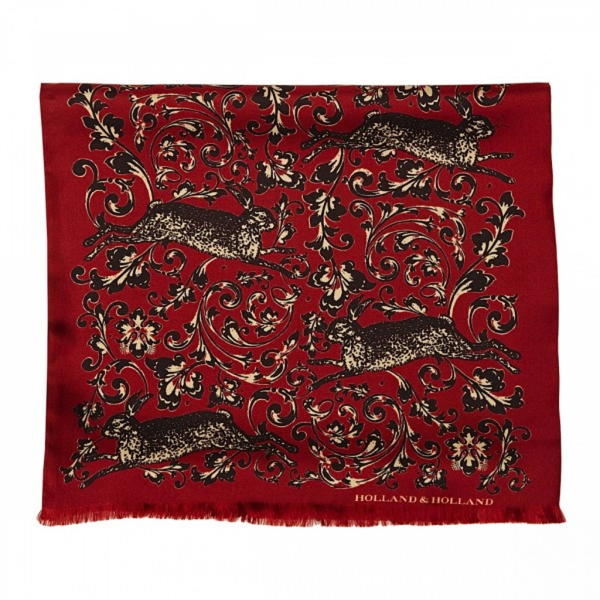 Wer auf der Hasenjagd -und auch sonst- nicht nur mit Schiesskünsten sondern auch durch sein äußeres Erscheinungsbild glänzen kommt an diesem herrlichen Schal nicht vorbei! Der Schal aus dem Hause der renommierten Büchsenmacherei Holland&Holland; ist aus reiner Seide und mit klassischem Flintengravur Motiven verziert.