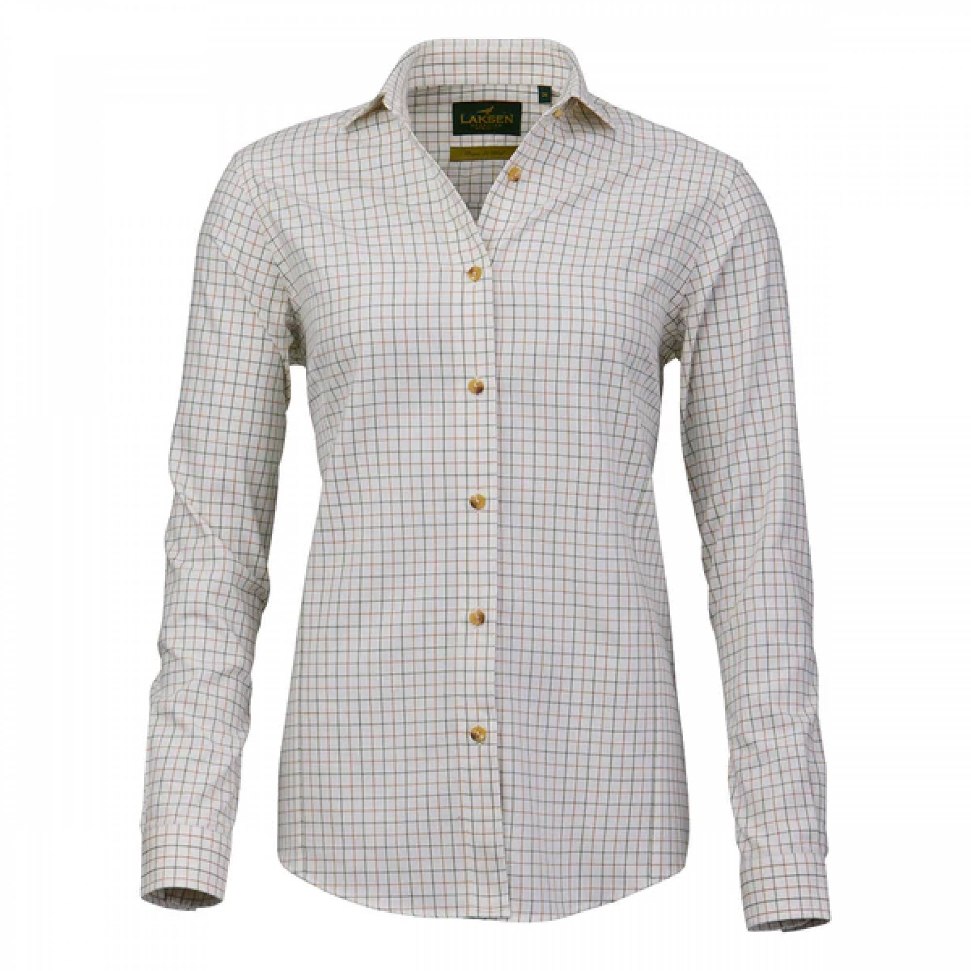A soft and classic tattersall check sporting shirt, made of 85% cotton and 15% wool. Looks flattering and feels comfortable. Made with a feminine fit, offering full freedom of movement, ideal for shooting. With sporting collar.