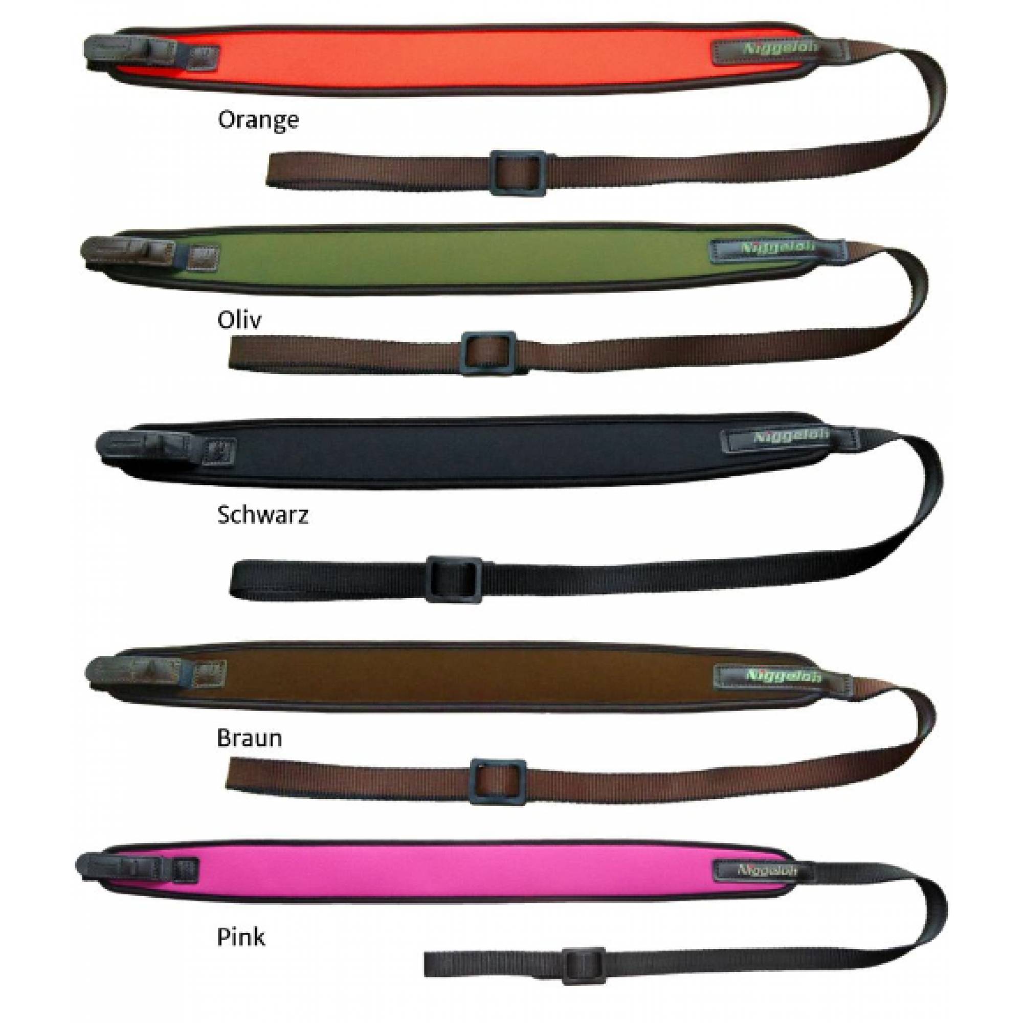 Gewehrgurt "Univeral" Einfache Bedienung, schnell und lautlos. - Hoher Tragekomfort durch ein breites, weiches Neoprenteil mit begrenzter Dehnung und optimaler Federung. - Rutschsicherung und beste Haftung auf der Schulter durch eine genarbte, gummiartige Unterseite. - Geräuschlos beim Hantieren mit der Waffe. - Als dämpfende Unterlage wirkt der weiche, volumige Gewehrriemen beim Auflegen auf die Kanzelbrüstung. - Hohe Stabilität garantieren alle verwendeten Materialien. - Pflegeleicht und geringes Gweicht: 95g - Für Riemenbügel mit mind. 20mm Durchlass.