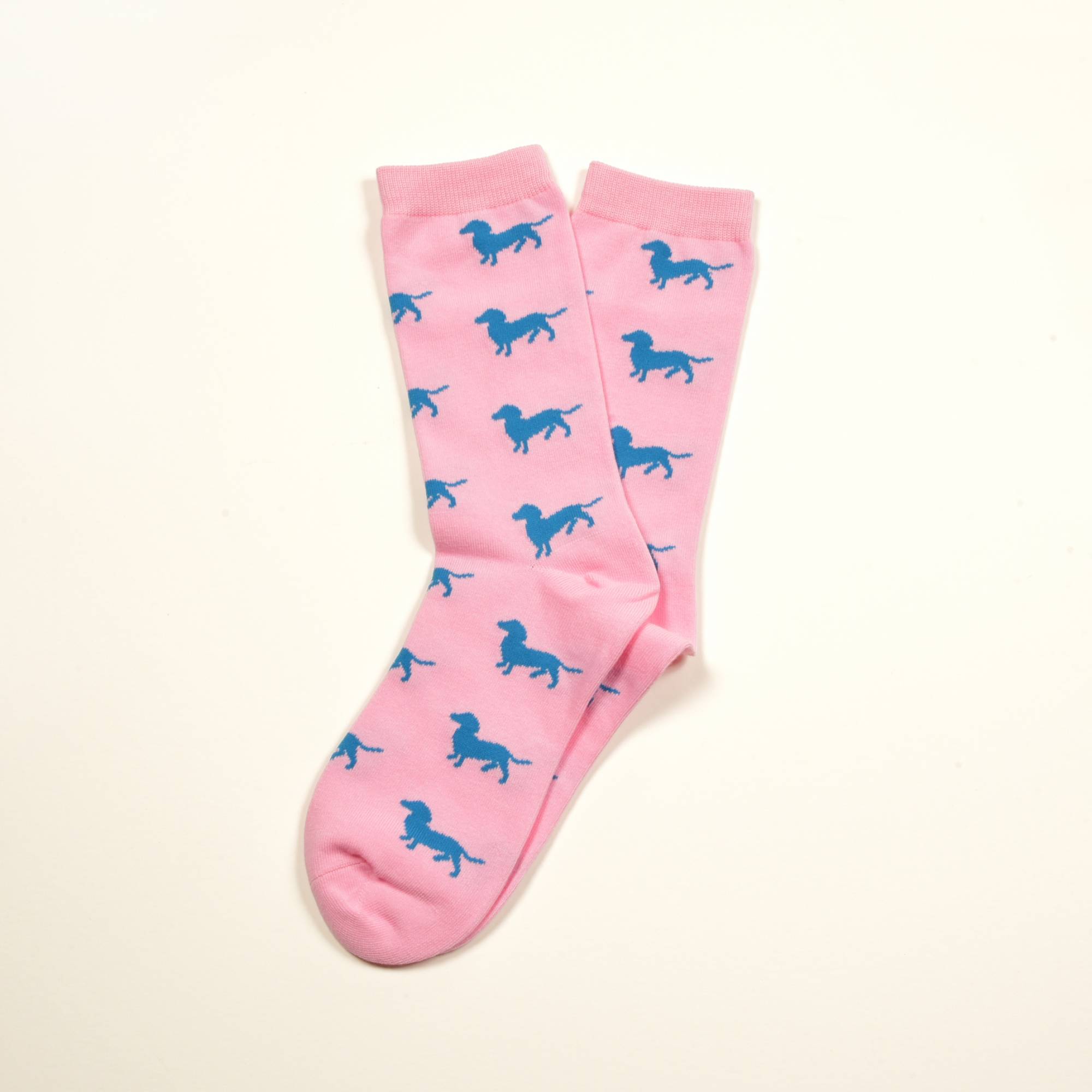 Rosa Socken, Dackel in Blau 36-40